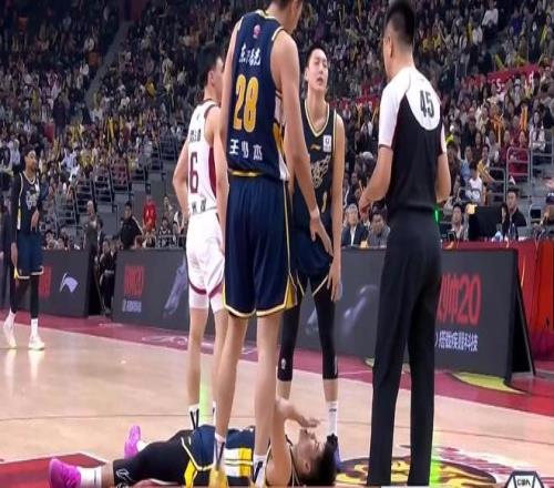 第三节杜锋撤下徐杰先发陈家政,开局王少杰萨林杰飚进2记读秒中投,刘东三分+上篮连得5分,陈家政再中底角三分,悲催的家政,接下来又挨了葛昭宝一肘,嘴角出血不得不下场。