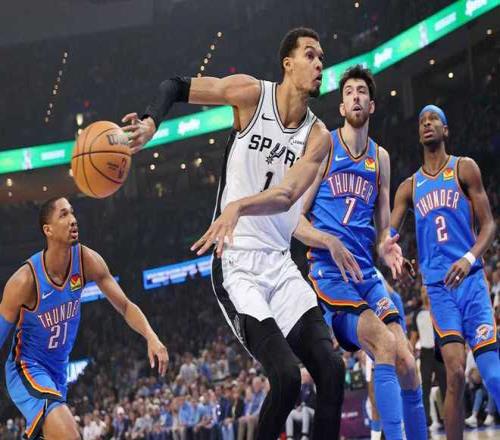 雷霆:亚历山大34分5板5助4帽、杰伦·威廉姆斯20分3助2断、卡鲁索13分2板4助、杰林·威廉姆斯11分10板5助2帽、米切尔11分6板4助、霍姆格伦8分10板3帽。马刺:卡斯尔20分7板8助、文班亚马17分7板1助、福克斯14分5板5助、尚帕尼13分6板1助、哈珀12分3板3助、凯尔登9分3板。