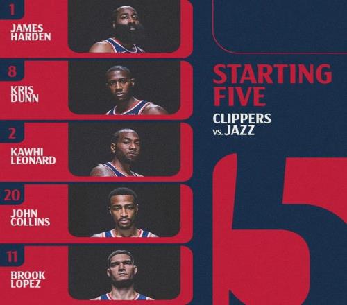北京时间1月2日,NBA常规赛,快船主场vs爵士。快船已经豪取5连胜,自祖巴茨伤停之后,快船还没输过。目前祖巴茨恢复场上训练,有望在1月下旬复出。截至今天赛前,快船11胜21负排名西部第12,爵士12胜20负西部第11。