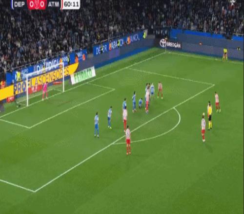 第61分钟,十分角,格列兹曼任意球破门,马竞1-0拉科